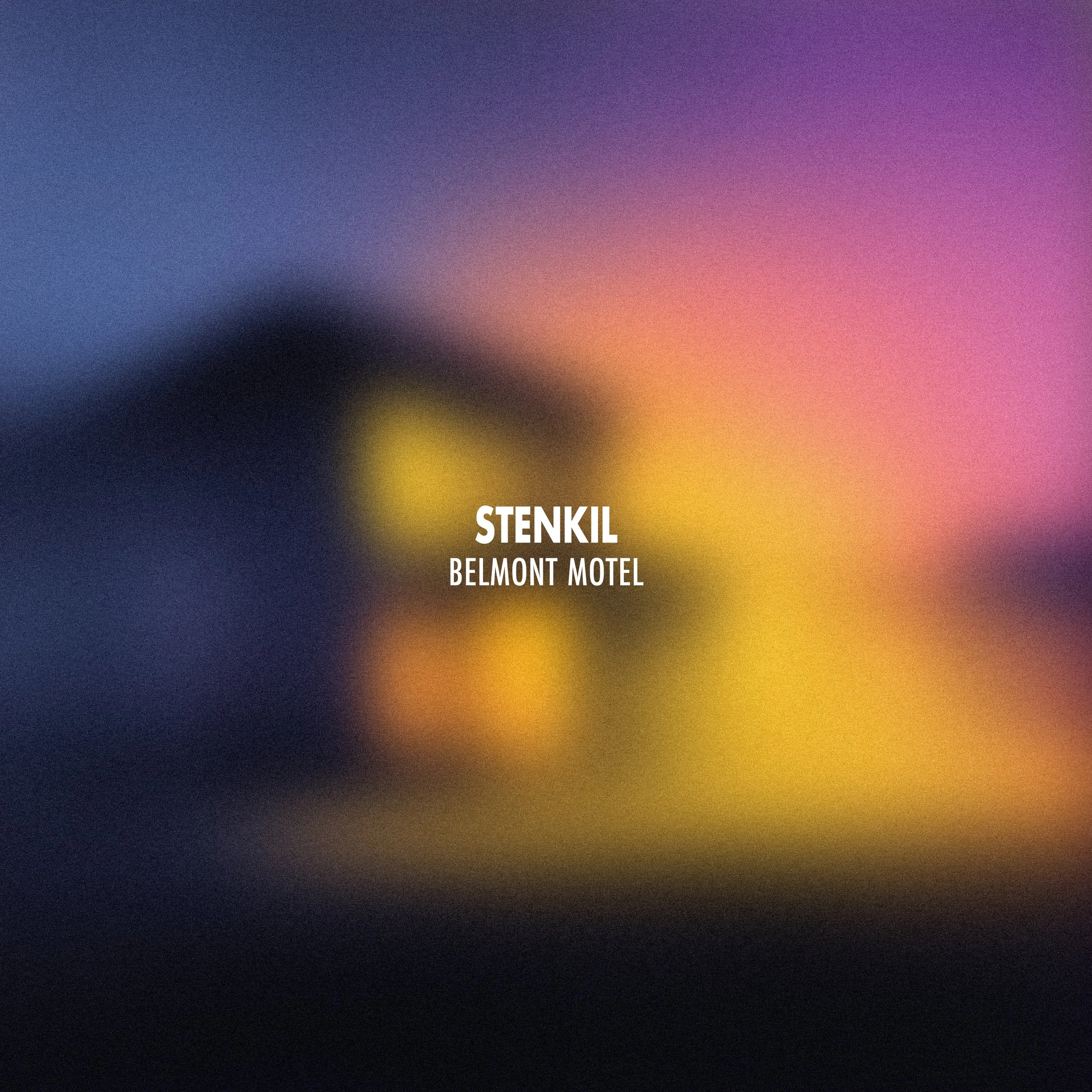Blurred image with colorful gradient background and centered text that reads "STENKIL BELMONT MOTEL."